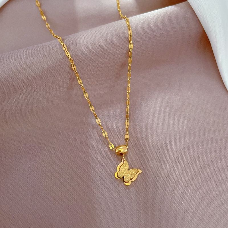 Elevate your style with this exquisite butterfly pendant necklace. Crafted with a delicate gold-tone chain, the necklace features a beautifully detailed butterfly charm that exudes elegance and charm. Perfect for casual or special occasions, this piece adds a touch of sophistication to any outfit. Designed for comfort and durability, it makes a thoughtful gift for a loved one or a stunning addition to your personal jewelry collection.